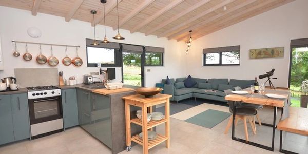 Siskin Lodge has a spacious, airy feel to it with a light-filled living/dining area and two large en suite super king or twin bedrooms. Up to 3 dogs allowed.