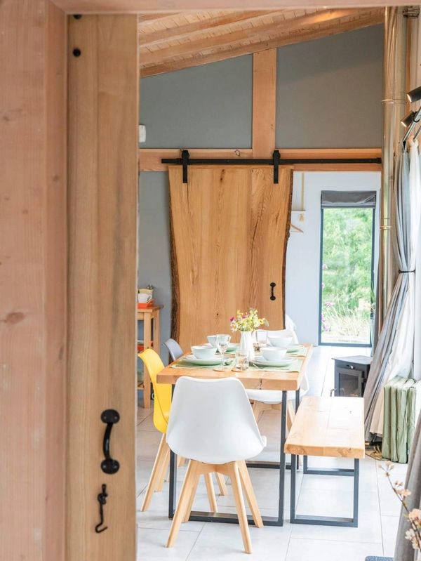Romantic and roomy Skylark Lodge offers 1 super king en suite bedroom and a large living/dining area. Up to 3 dogs allowed.